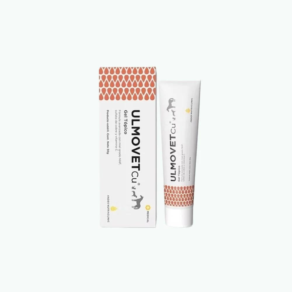 Ulmovet CU Gel es un gel tópico diseñado para apoyar la cicatrización y recuperación de heridas en perros y gatos, gracias a su innovadora fórmula a base de miel de ulmo grado NHF, sulfato de cobre y vitamina C. Esta combinación potencia la regeneración de tejidos, ayuda a prevenir infecciones y protege la piel lesionada, favoreciendo una recuperación más rápida y segura.