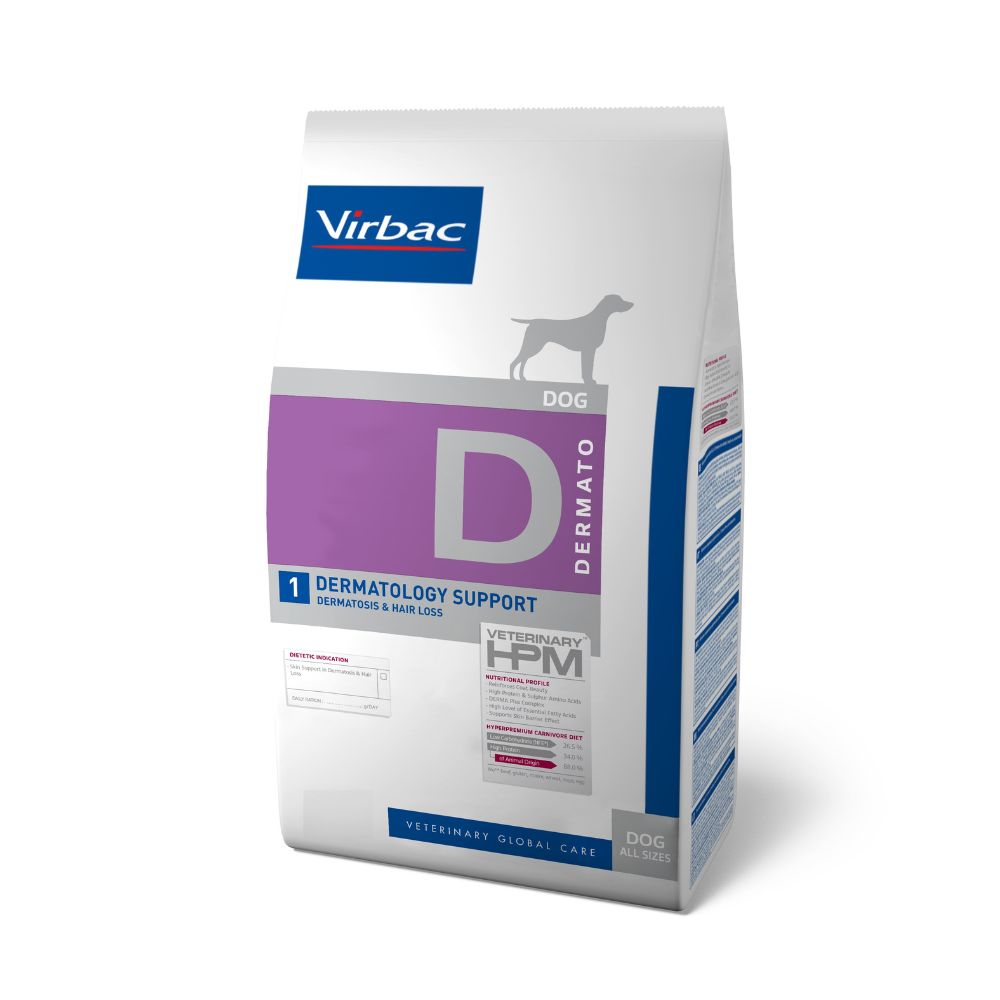 VIRBAC HPM Dog Dermatology Support es un alimento medicado para perros indicado para el apoyo de la función dérmica en caso de dermatosis y pérdida excesiva de pelo. Dieta rica en proteínas 34% (con 88% de proteínas animales) y baja en carbohidratos 26,5%.