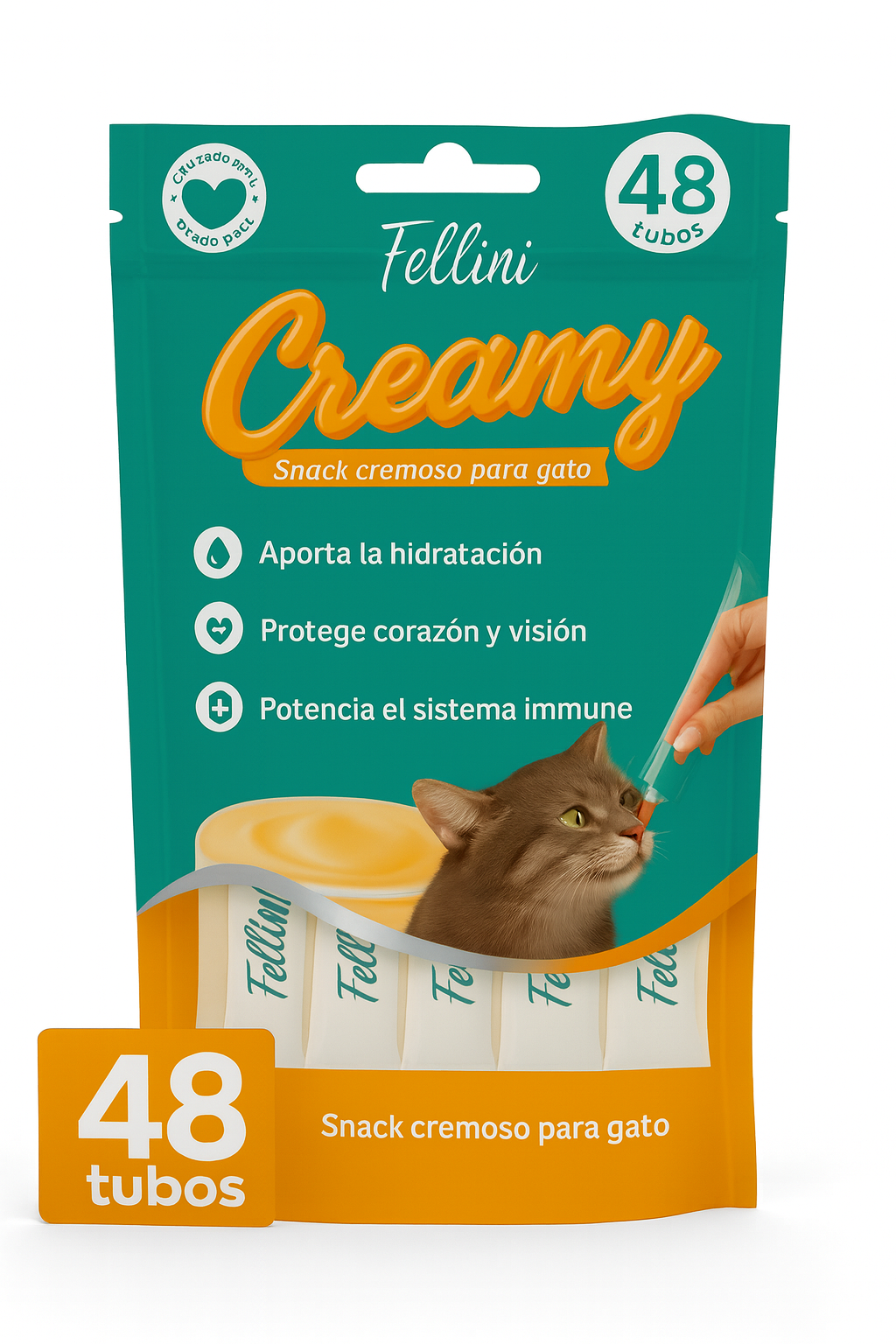 Sorprende a tu gatito con el Snack Fellini Creamy sabor Cangrejo y Atún, un premio irresistible con textura cremosa y suave que hará feliz a tu felino cada día. Esta presentación incluye 48 tubos de 15 gr, perfecta para quienes buscan practicidad y un stock duradero de su snack favorito.