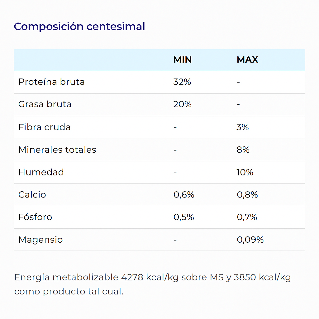 Elaborada con proteínas de bajo peso molecular, altamente digestibles y con menor capacidad alergénica, lo que contribuye al control de reacciones adversas al alimento.