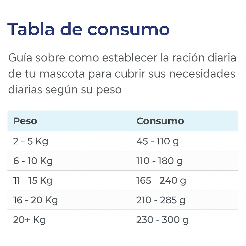 Administrar según indicación del médico veterinario. Asegura siempre agua fresca disponible.