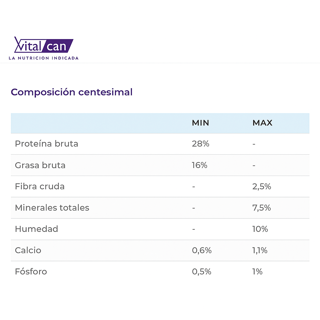 Contiene proteínas altamente digestibles que minimizan la carga digestiva.