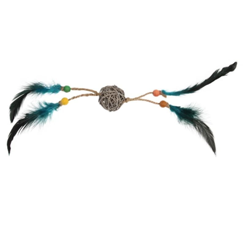 Eco Catch Scratch Rattan y Plumas es un juguete para gatos con una bola de rattan y plumas de color. La gama Eco está fabricada con plumas naturales, madera y ratán y contiene un sonajero para llamar la atención del gato. Diseñados para satisfacer el instinto natural de caza de los gatos, estos divertidos y atractivos juguetes los mantendrán entretenidos durante horas, gracias al sonajero en el centro del juguete Catch and Scratch fomenta el movimiento.