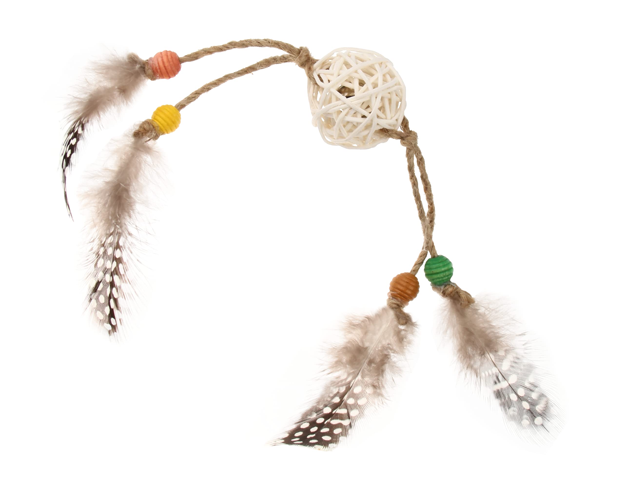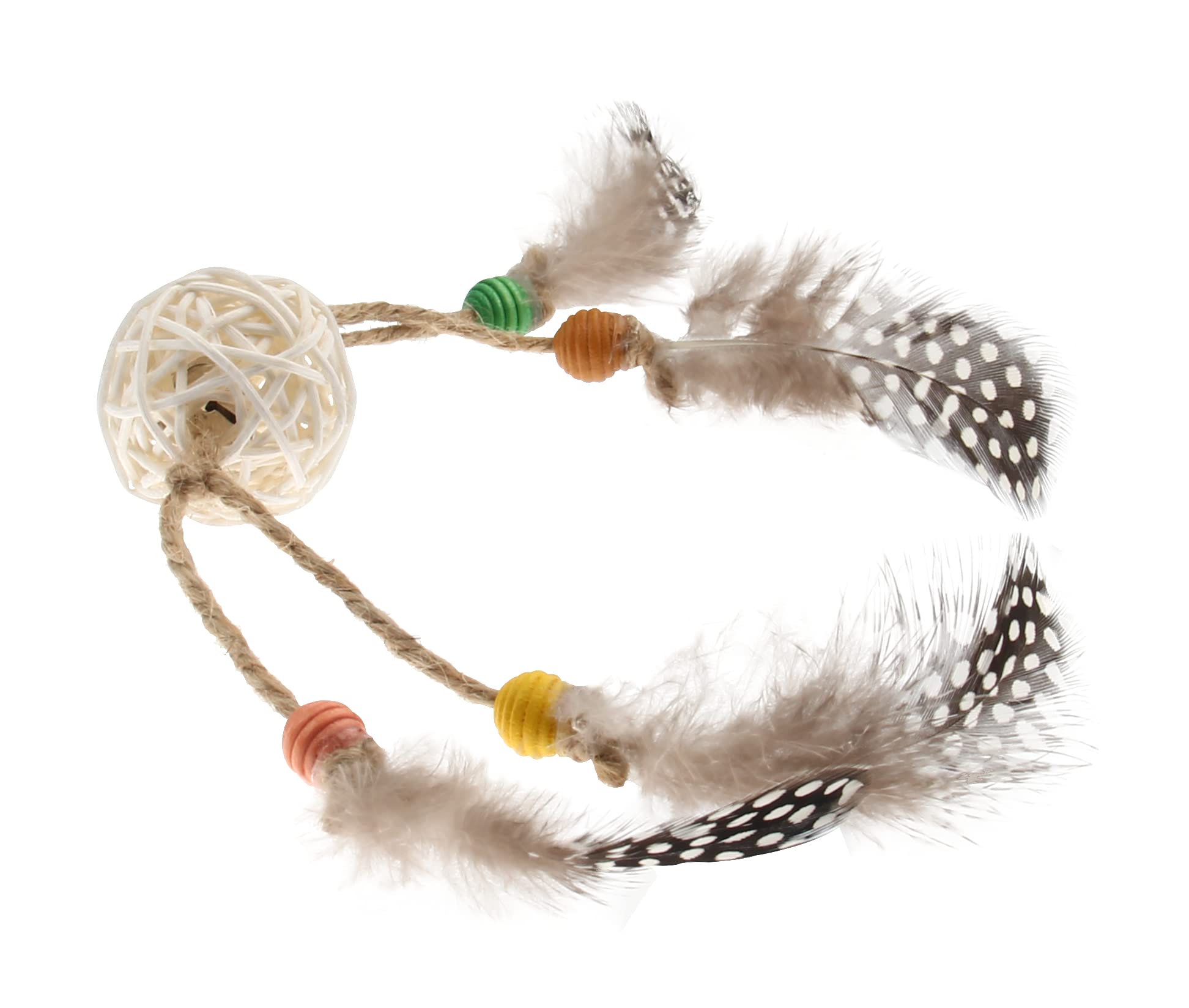 Eco Catch Scratch Rattan y Plumas es un juguete para gatos con una bola de rattan y plumas de color. La gama Eco está fabricada con plumas naturales, madera y ratán y contiene un sonajero para llamar la atención del gato. Diseñados para satisfacer el instinto natural de caza de los gatos, estos divertidos y atractivos juguetes los mantendrán entretenidos durante horas, gracias al sonajero en el centro del juguete Catch and Scratch fomenta el movimiento.