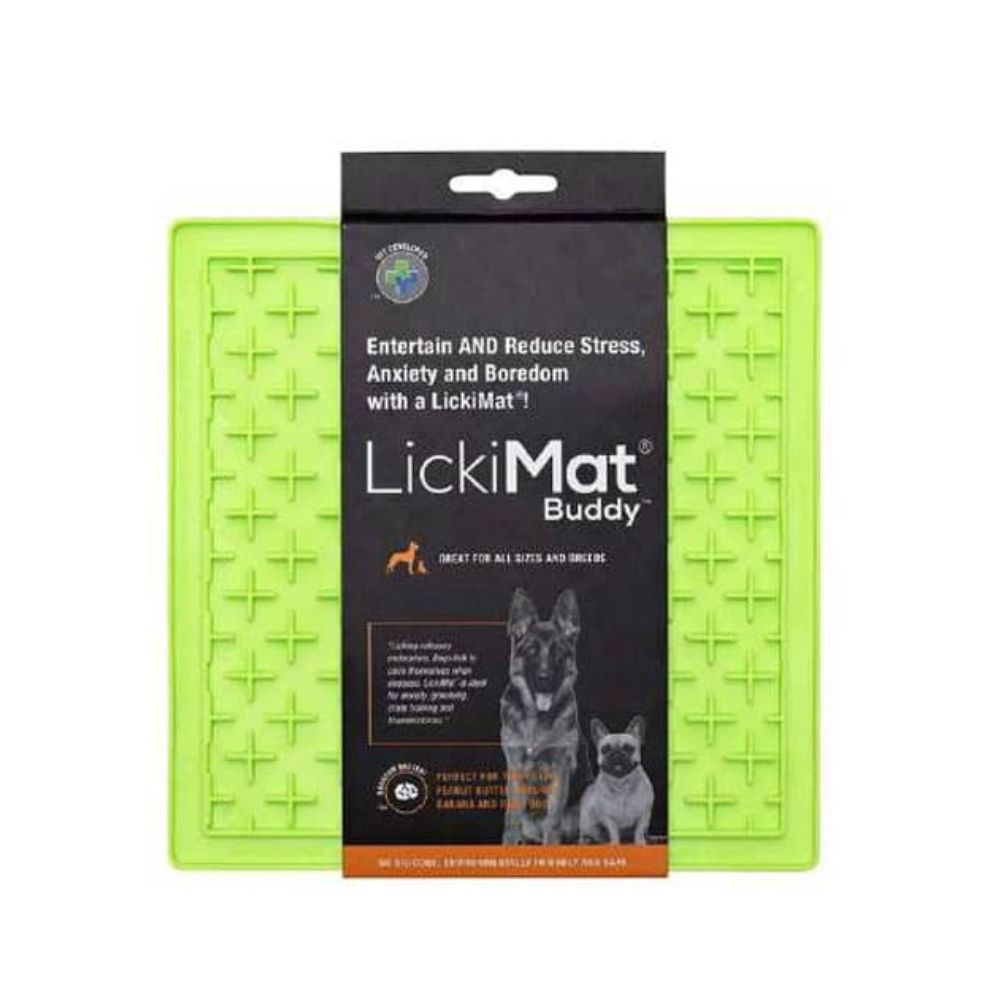 LickiMat Buddy es comedero para perros para alimentación lenta con forma de cuadrada que ayuda a combatir el aburrimiento, reducir la ansiedad, comportamientos destructivos y disfrutar una experiencia de alimentación enriquecida al recoger los alimentos incrustados en la superficie texturada. Puedes usarlo con alimentos húmedos, golosinas en pasta, fruta molida, y también dar su comida BARF.