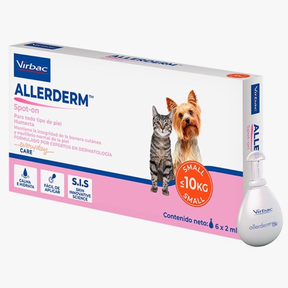 ALLERDERM Spot-On contiene una combinación de ceramidas, ácidos grasos y colesterol (“Complejo Lipídico Cutáneo”) similar a la que se encuentra en la piel de perros y gatos sanos. La aplicación de ALLERDERM Spot-On® ayuda a restablecer la barrera protectora de la piel facilitando la hidratación, reduciendo la sensibilidad y reforzando su función protectora