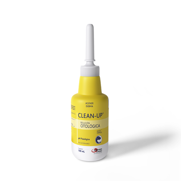 CLEAN UP es una solución otológica con pH fisiológico para la limpieza del canal auditivo externo de perros y gatos. Ayuda a eliminar el exceso de cerumen y costras, además de mantener la hidratación en el conducto auditivo. Ayuda en la prevención y tratamiento de otitis externas. El envase posee una válvula interna en la boquilla de aplicación para evitar contaminación del producto.