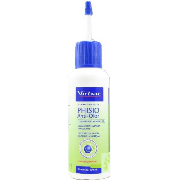 Virbac Phisio Anti-Olor 100ml es un limpiador auricular para perros y gatos