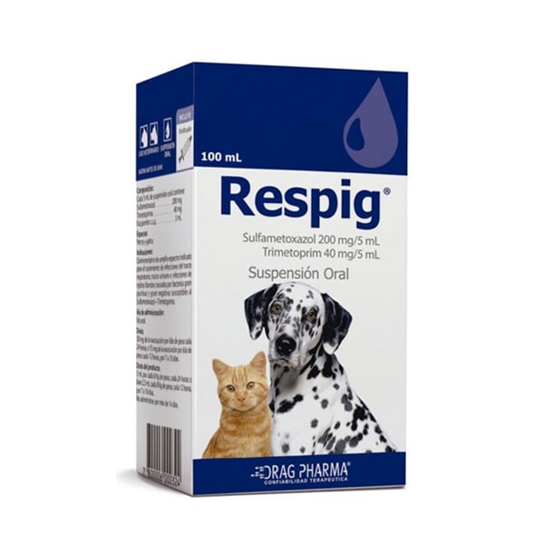 Respig 100 ml suspensión oral es un antimicrobiano de amplio espectro indicado para el tratamiento de infecciones del tracto respiratorio, tracto urinario e infecciones de tejidos blandos, causadas por bacterias Gram positivas y Gram negativas susceptibles al Sulfametoxazol y Trimetoprima.