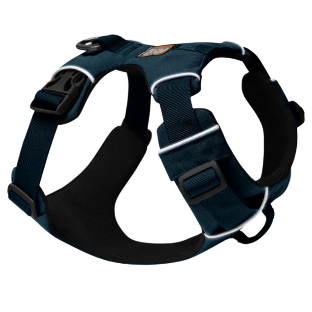 Ruffwear Front Range Harness BLUE MOON, es un arnés acolchado de uso diario para perros, muy cómodo y muy fácil de poner y ajustar, diseñado con un acolchado de espuma para un uso prolongado, y además cuenta con un borde reflectante para visibilidad en condiciones de poca luz.