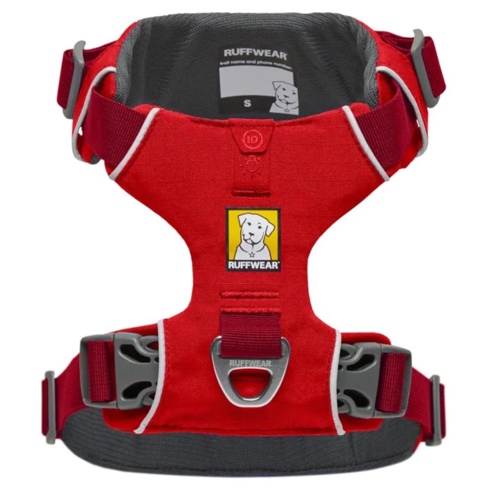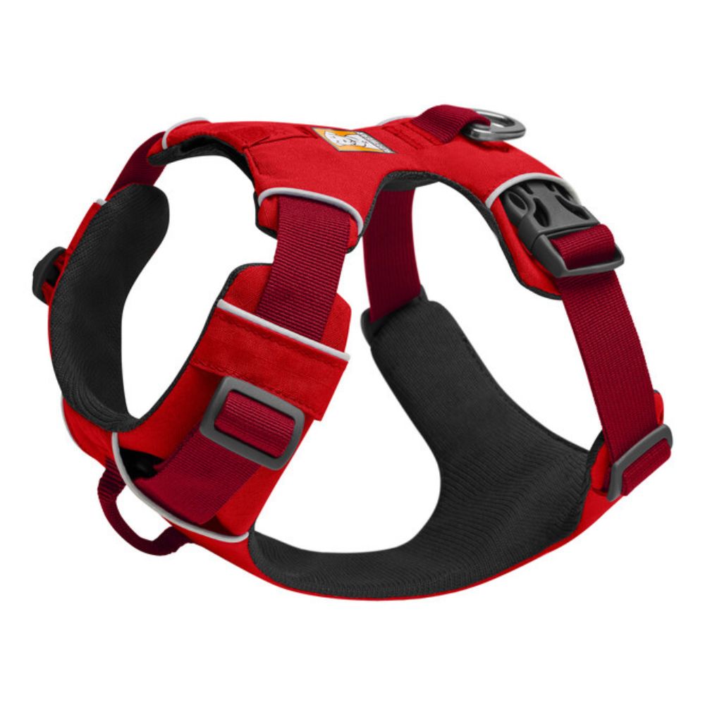 Ruffwear Front Range Harness RED SUMAC, es un arnés acolchado de uso diario para perros, muy cómodo y muy fácil de poner y ajustar, diseñado con un acolchado de espuma para un uso prolongado, y además cuenta con un borde reflectante para visibilidad en condiciones de poca luz.