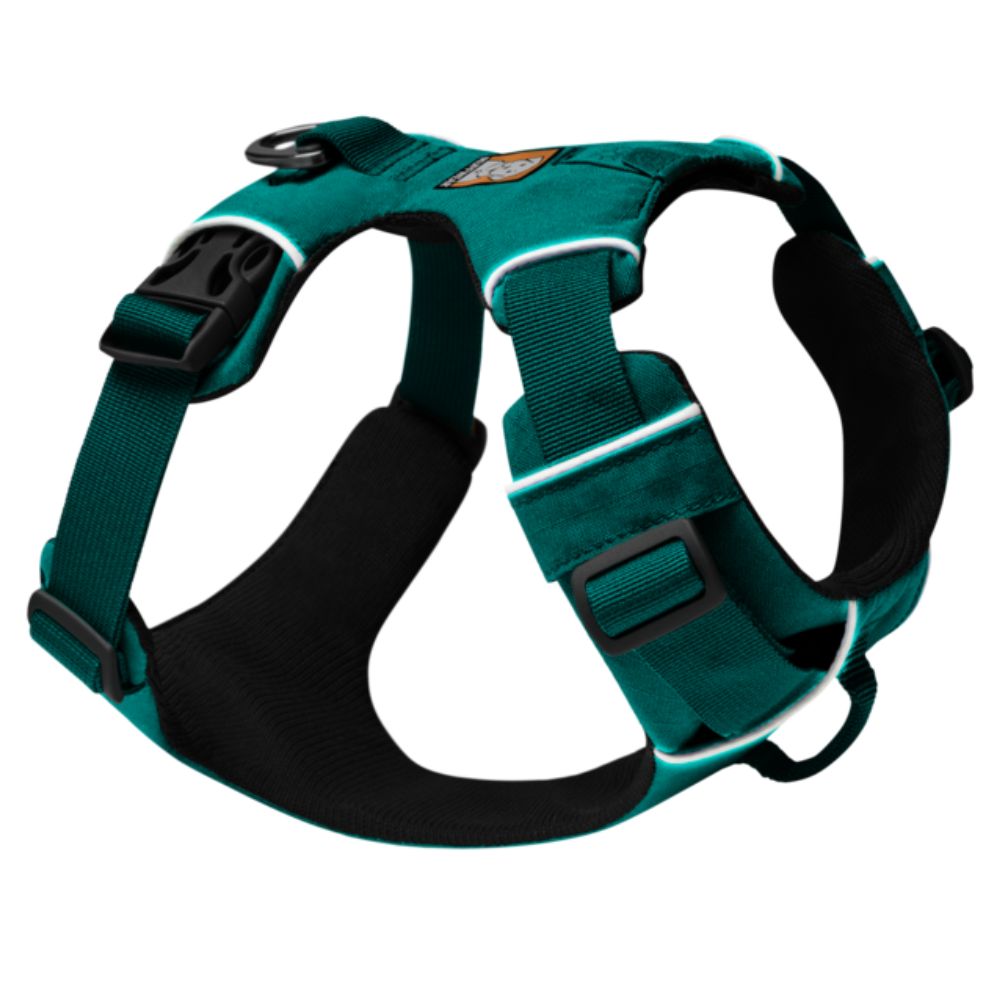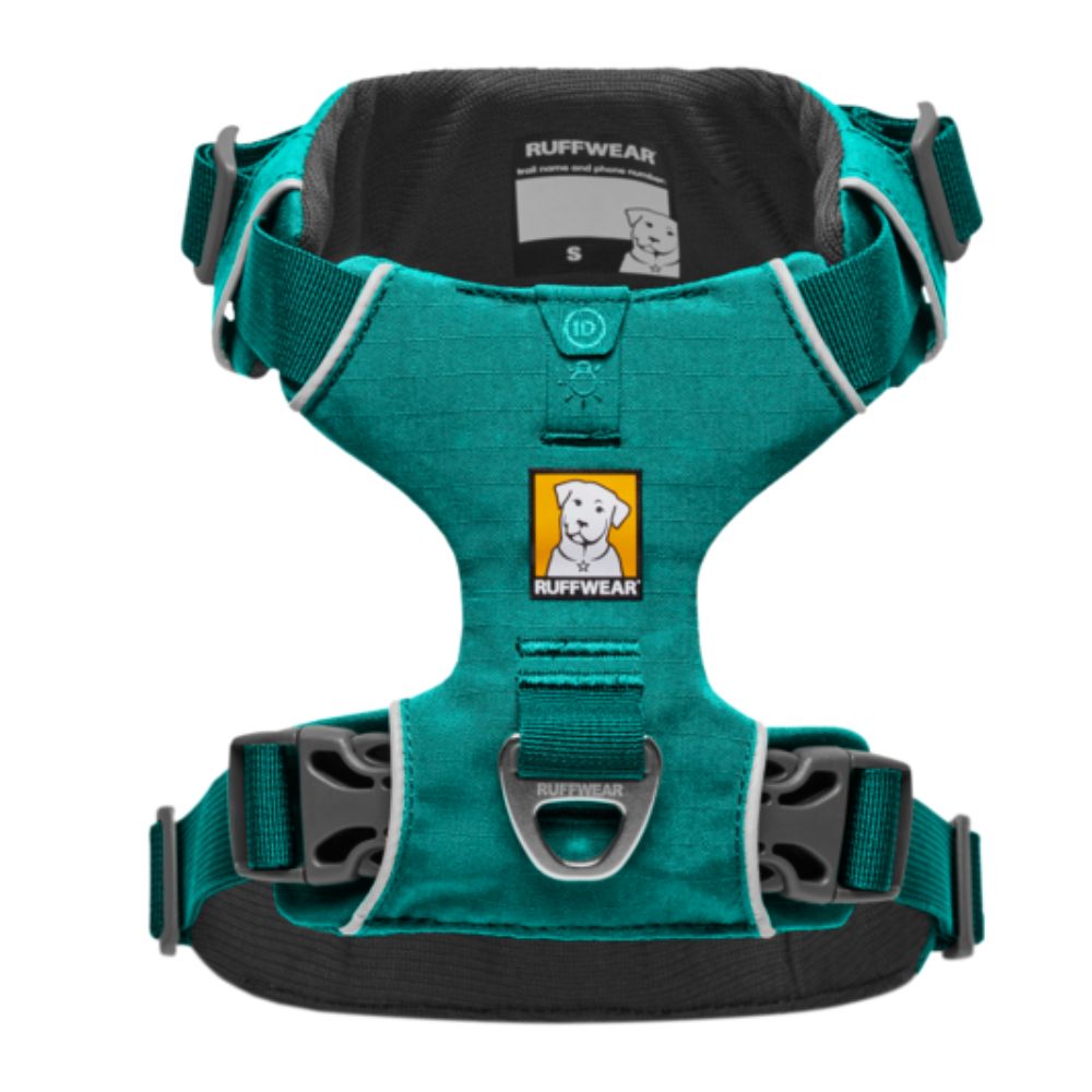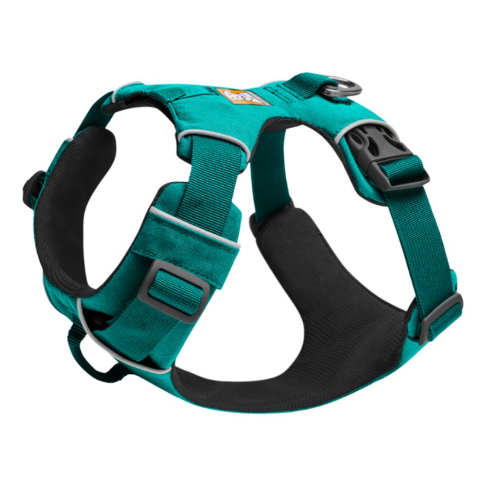 Ruffwear Front Range Harness AURORA TEAL, es un arnés acolchado de uso diario para perros, muy cómodo y muy fácil de poner y ajustar, diseñado con un acolchado de espuma para un uso prolongado, y además cuenta con un borde reflectante para visibilidad en condiciones de poca luz.