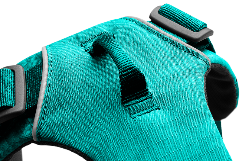 Ruffwear Front Range Harness AURORA TEAL, es un arnés acolchado de uso diario para perros, muy cómodo y muy fácil de poner y ajustar, diseñado con un acolchado de espuma para un uso prolongado, y además cuenta con un borde reflectante para visibilidad en condiciones de poca luz.