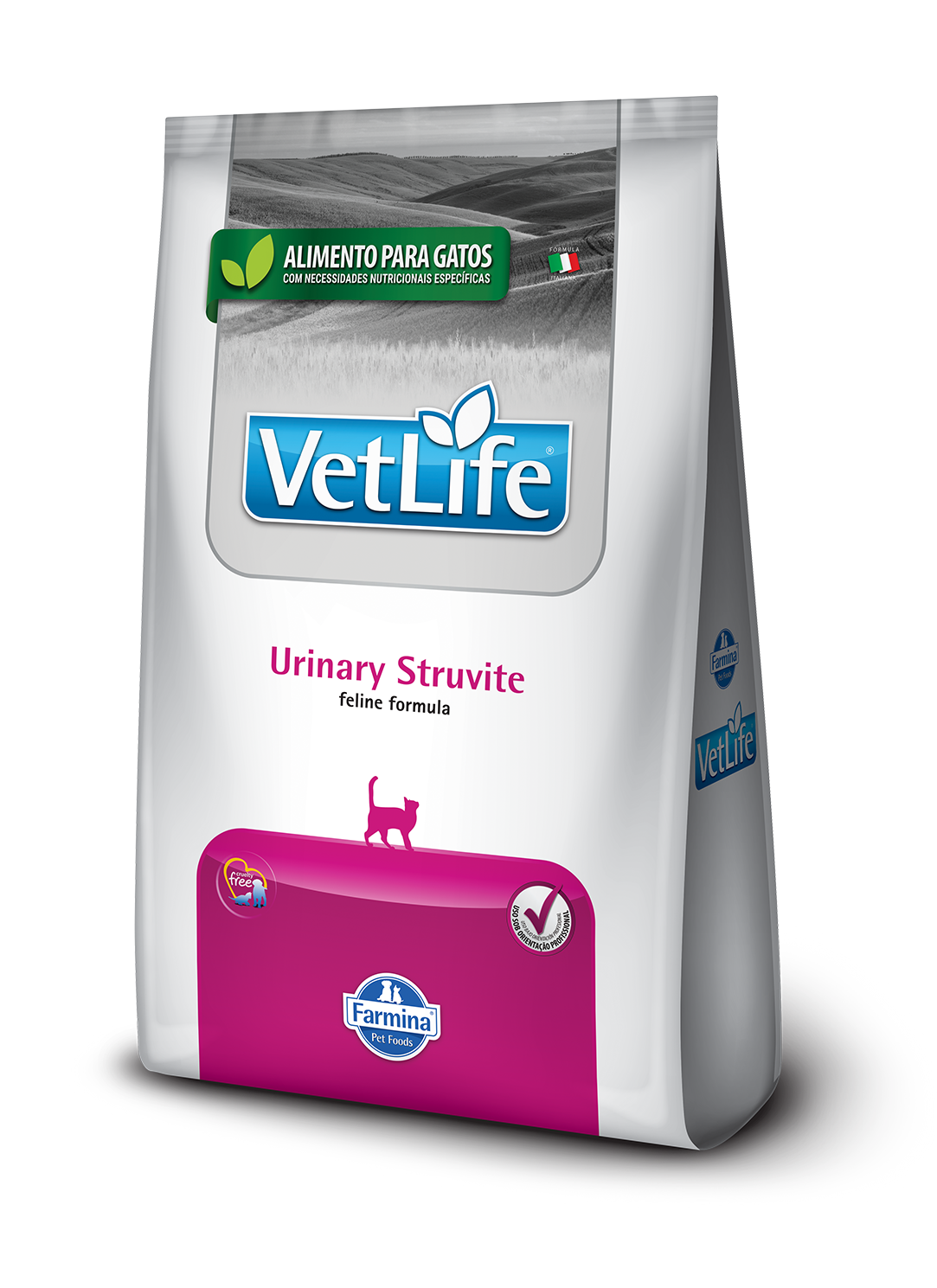 Vet Life Urinary Struvite Feline es un alimento coadyuvante seco indicado para gatos adultos que padecen desarreglos urinarios provocados por la formación de cálculos a base de estruvita. Las bajas concentraciones de proteínas, calcio, fósforo y magnesio contenidas en Farmina Vet Life Struvite crean un entorno desfavorable a la agregación y precipitación de los cristales de estruvita. La acción acidificante de cloruro de DL- metionina y amonio mantiene un pH urinario levemente ácido, inhibiendo la formación de cristales y el crecimiento bacteriano. Útil en el tratamiento de la cistitis idiopática.