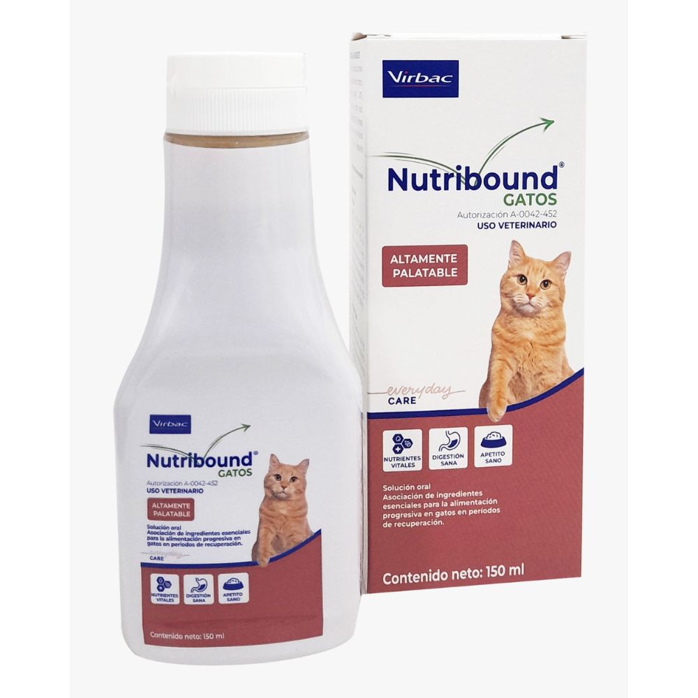 Nutribound® es una fórmula líquida altamente palatable y lista para su uso que favorece al animal la ingesta de agua y comida. Proporciona los nutrientes escenciales especialmente recomendados como soporte al animal en los estadíos más tempranos en condiciones de recuperación. No corresponde a un alimento completo. Sin agentes conservantes ni colorantes artificiales.